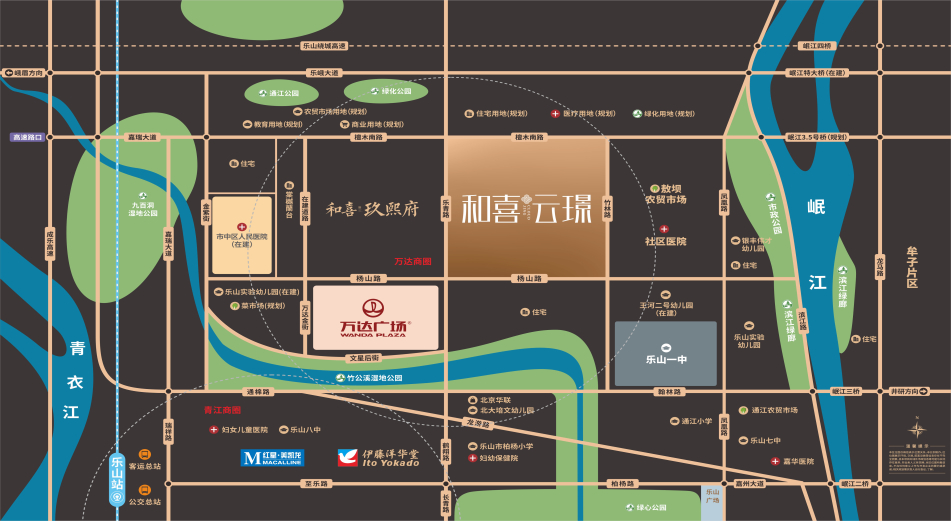 地址:乐山·通江·万达广场2号门斜对面(和喜云璟营销中心)